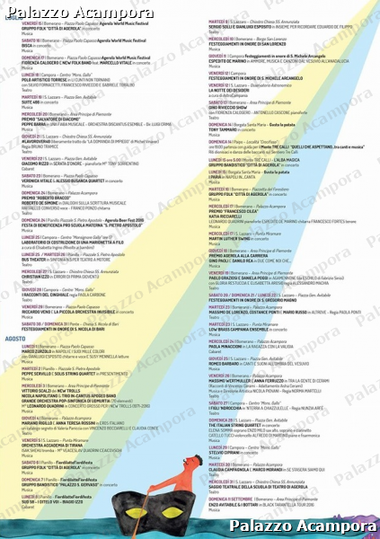 Grande protagonista di questi eventi culturali la location storica di Palazzo Acampora, sede di ben sei tappe del Festival.